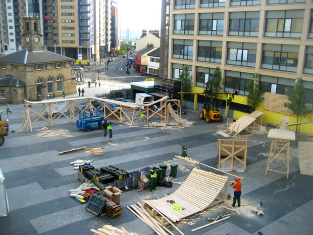 The riders are in Newcastle early to get acclimated to the area and to prepare themselves mentally for the five-event urban mountain bike series. Ben Boyko came to Newcastle two days early, and emailed his impression of the course back to the North American riders: „This is definitely Northshore style. It’s all wood roller-coasters, possibly going to be a fair sized drop with a wood landing in the start. I like it.”